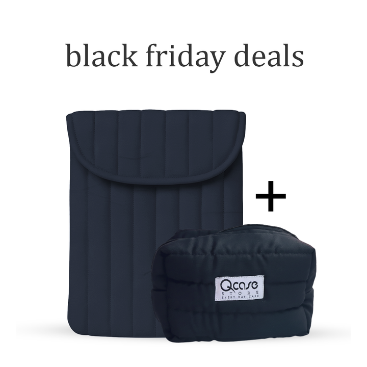 This duo pairs a soft, protective laptop sleeve with a stylish medium pouch — ideal for makeup, chargers, or daily accessories.