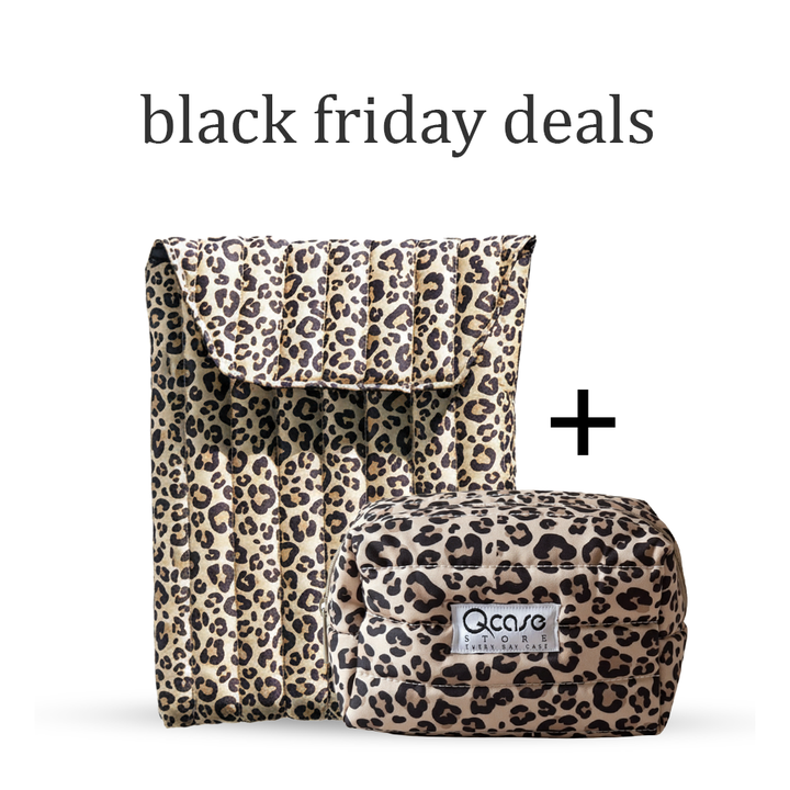 This duo pairs a soft, protective laptop sleeve with a stylish medium pouch — ideal for makeup, chargers, or daily accessories.