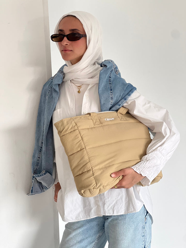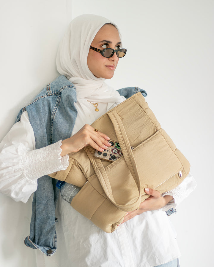 Soft, lightweight, and effortlessly cool. Our quilted puffer bag is your go-to for daily wear — comfortable, and made to elevate every outfit.