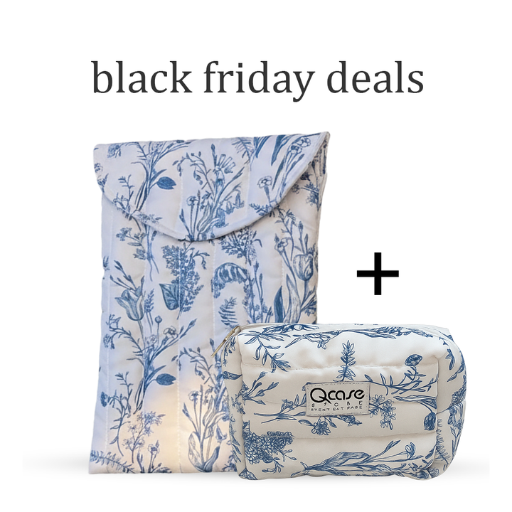 This duo pairs a soft, protective laptop sleeve with a stylish medium pouch — ideal for makeup, chargers, or daily accessories.